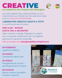 Dopo il successo degli incontri invernali, proseguiamo con la rassegna “CREATIVE”: ogni ultimo sabato del mese le Risorgive del Bacchiglione si trasformano in un atelier dove creare e sperimentare con materiali e tecniche diverse!