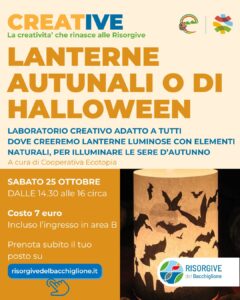 Il primo appuntamento con i nostri atelier invernali “CREATIVE” è dedicato all’autunno: realizzeremo delle lanterne luminose fatte a mano utilizzando elementi naturali della stagione oppure a tema Halloween 👻🍂 Decorazioni perfette per le tenerci compagnia nelle buie sere autunnali e invernali! 🕯️