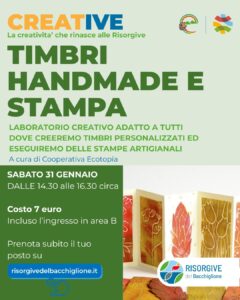 Il quarto appuntamento con i nostri atelier invernali “CREATIVE” è dedicato alla stampa artigianale: realizzeremo dei timbri autocostruiti e personalizzati e poi li metteremo alla prova creando delle stampe uniche!