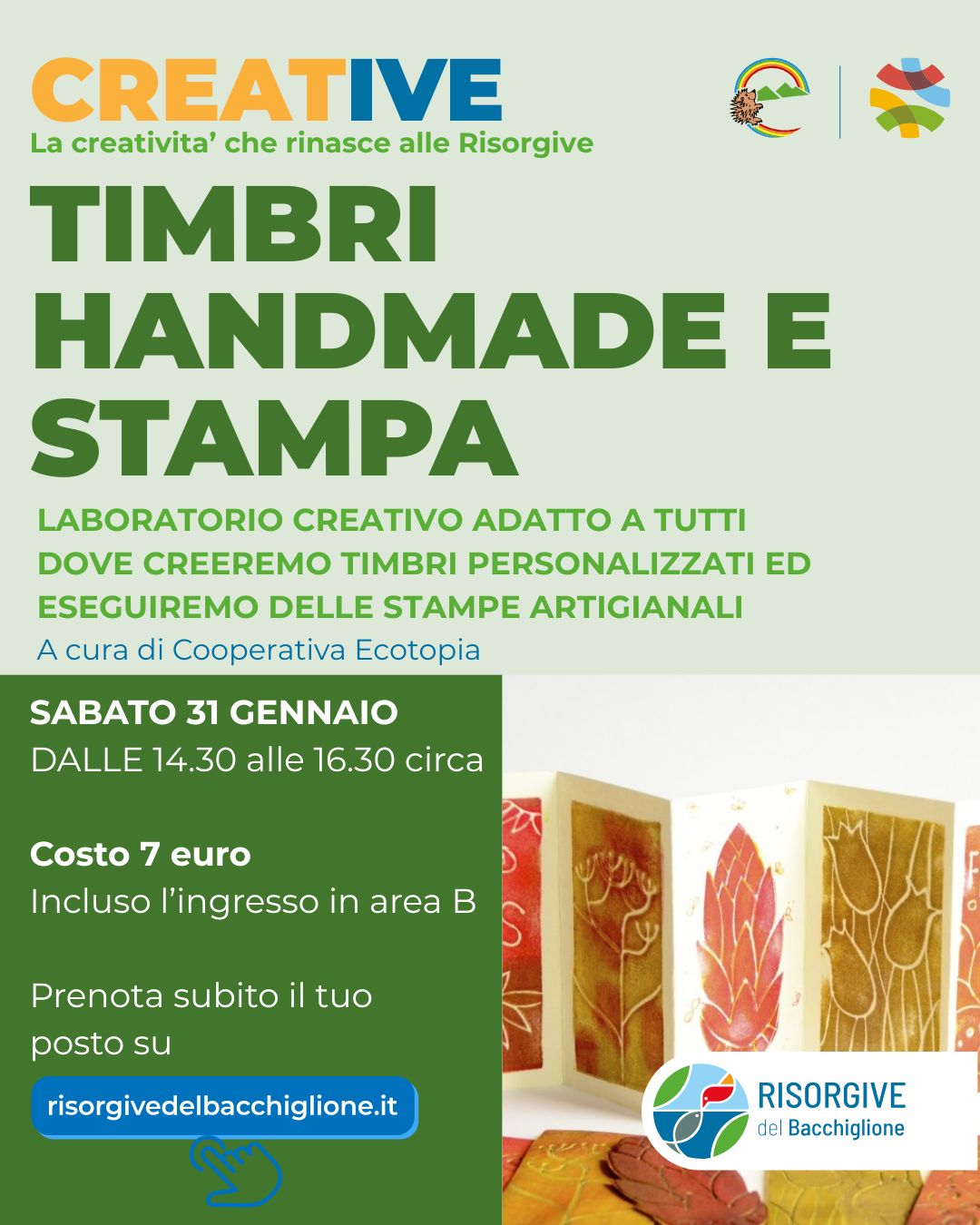 Diamo il via alla rassegna “CREATIVE“. Il nome deriva proprio dall’unione delle parole “creatività” e “Risorgive”: ogni ultimo sabato del mese queste ultime si trasformeranno in un atelier invernale dove creare e sperimentare con materiali e tecniche diverse.