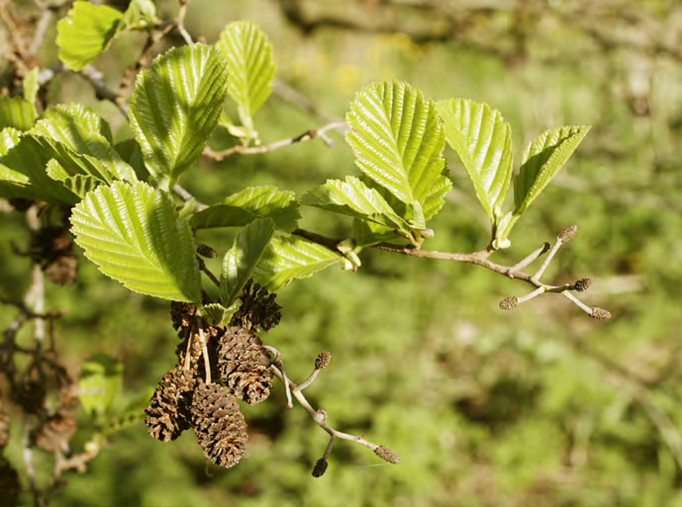 L’ontano nero è una specie a rapido accrescimento, che può raggiungere i 20 m di altezza, ma poco longeva. Nelle figure seguenti si possono osservare foglie, frutti e corteccia.