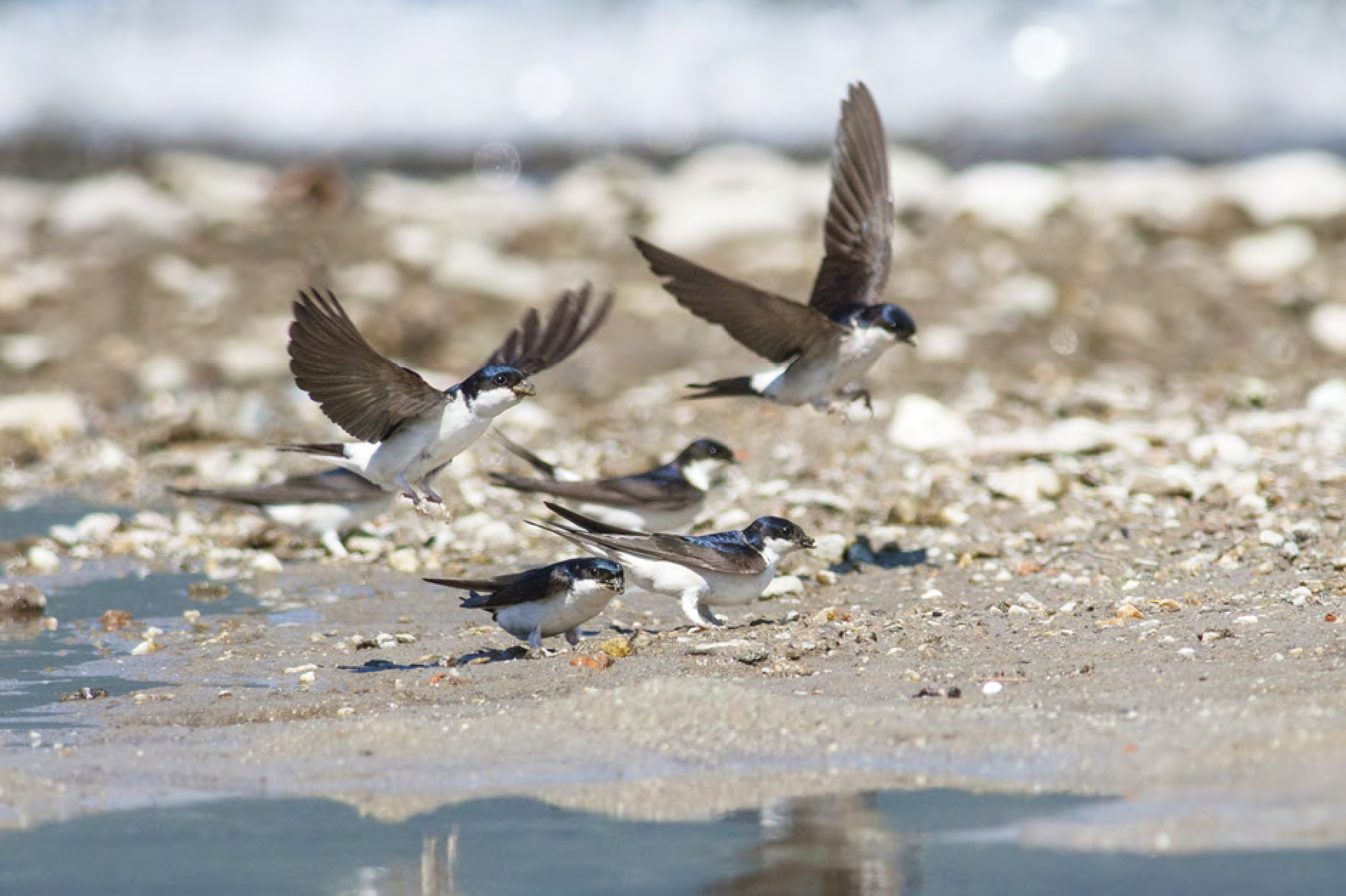 Il Topino, come il Martin pescatore, costruisce il nido in gallerie ma necessita di sabbia fine per poter scavare; questa specie infatti si ritrova solo sulle pareti sabbiose a margine dei fiumi. La distribuzione del Topino segue strettamente quella del corso dei fiumi di maggior dimensione con particolare preferenza per le aree dove le acque non sono regimentate. Nel Parco le si può osservare in caccia sulla superficie dell’acqua sia durante la migrazione che nei mesi estivi ma, in assenza di siti adatti costruire il nido, non le si ritrova nidificanti.