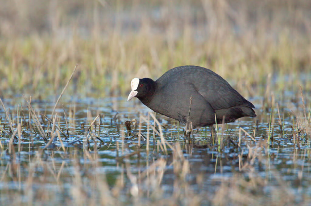Folaga e Gallinella sono le due specie di rallidi che si possono vedere senza troppe difficoltà e che risultano anche abbastanza semplici da identificare. Si tratta di due uccelli scuri, che vedrete muoversi lungo le rive e nuotare. La Folaga galleggia e nuota più quietamente emettendo spesso dei nasali “PIT!”. Ha inoltre un vistoso becco bianco che la identifica senza possibilità d’errore. I loro pulcini, spelacchiati, con la testa dalla pelle rossa e piuttosto goffi, possono trarre in inganno e sembrare dei pulcini malmessi ed in difficoltà: non lanciatevi a salvarli, sono semplicemente fatti così.