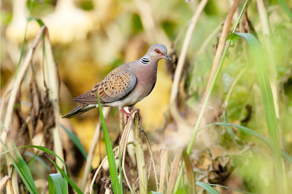 La Tortora selvatica è timida e diffidente e rimane nascosta nella vegetazione quasi tutto il tempo che passa in Europa (più o meno da aprile a settembre). A fugare ogni dubbio, nel caso non foste vicini tanto da distinguerne i colori e vedere macchie o collarini ai lati del collo, sarà la coda: scura con una vistosa banda finale bianca
