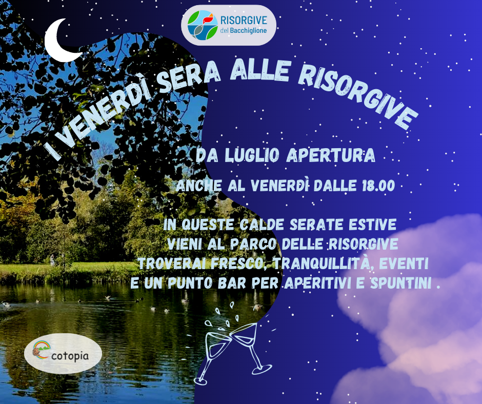 🌙 Da luglio il punto ristoro delle Risorgive apre anche il venerdì sera dalle 18.00!